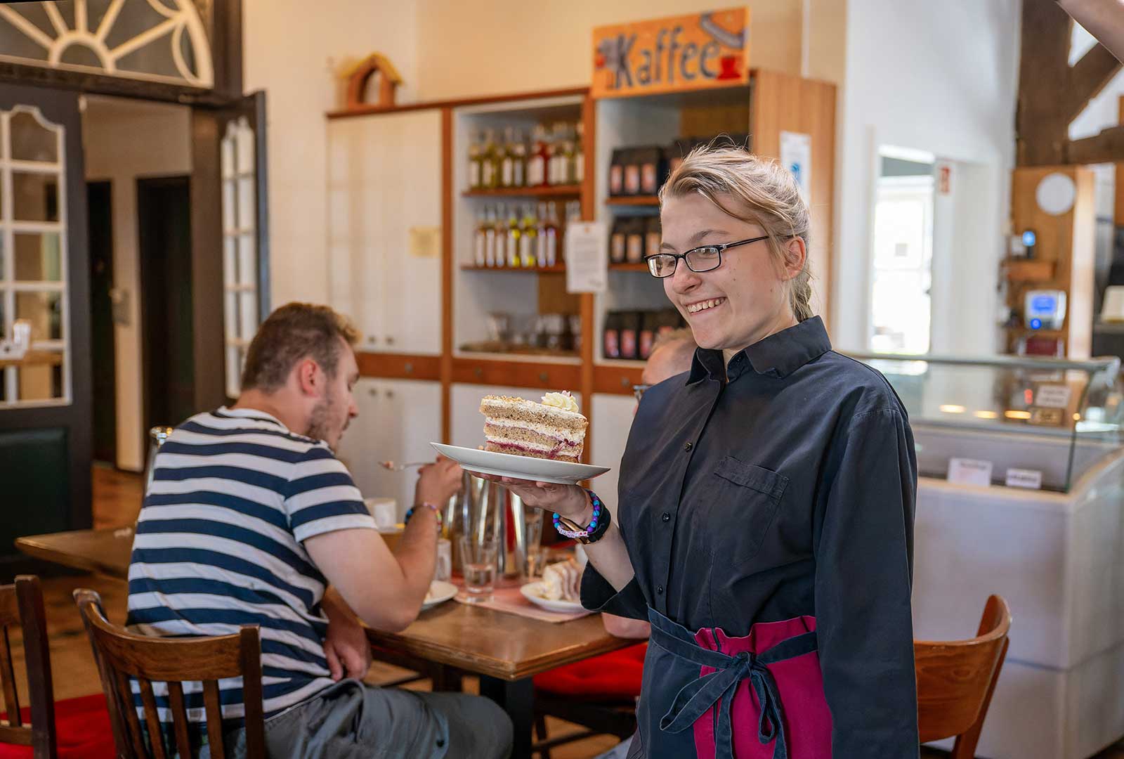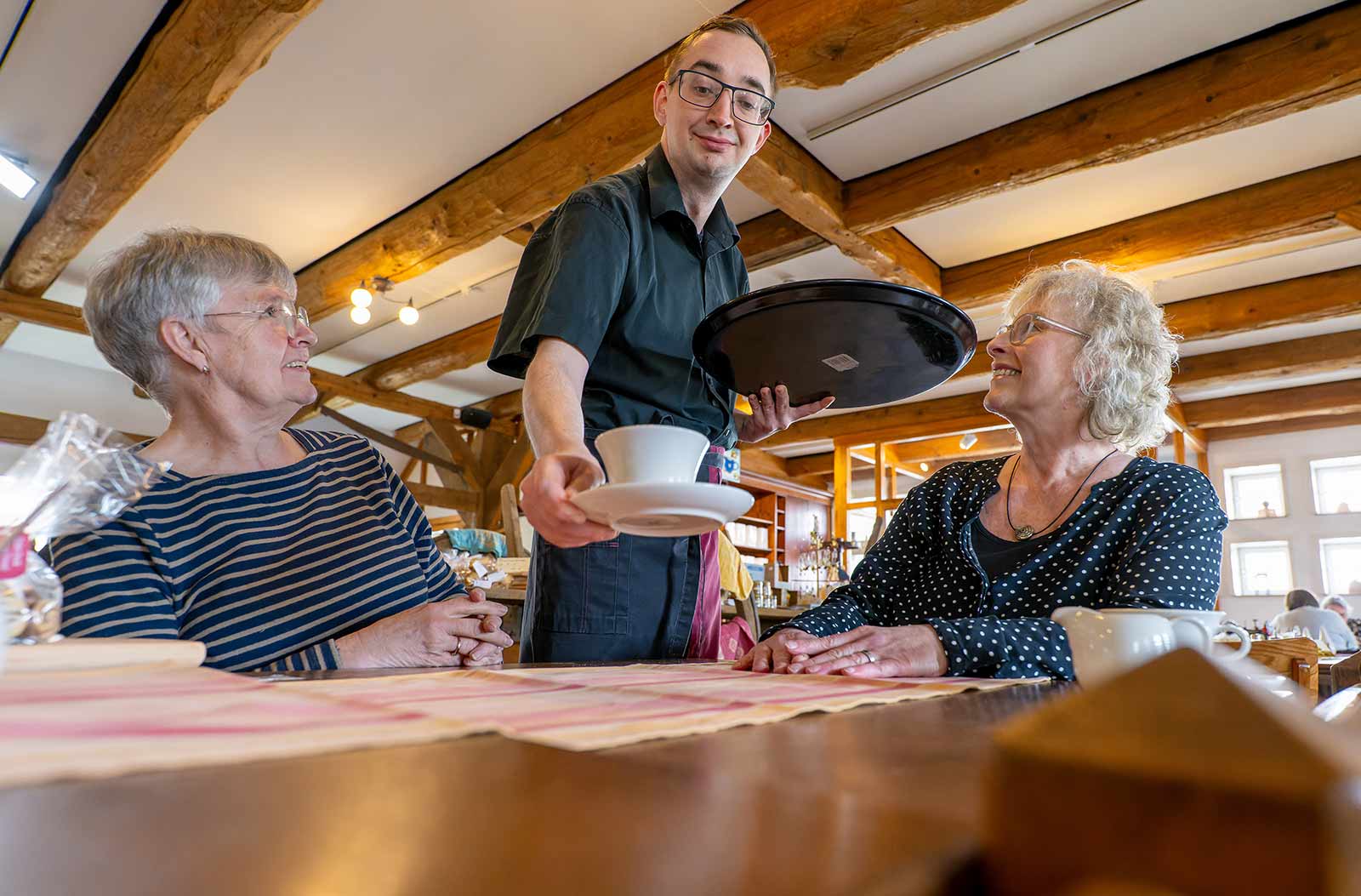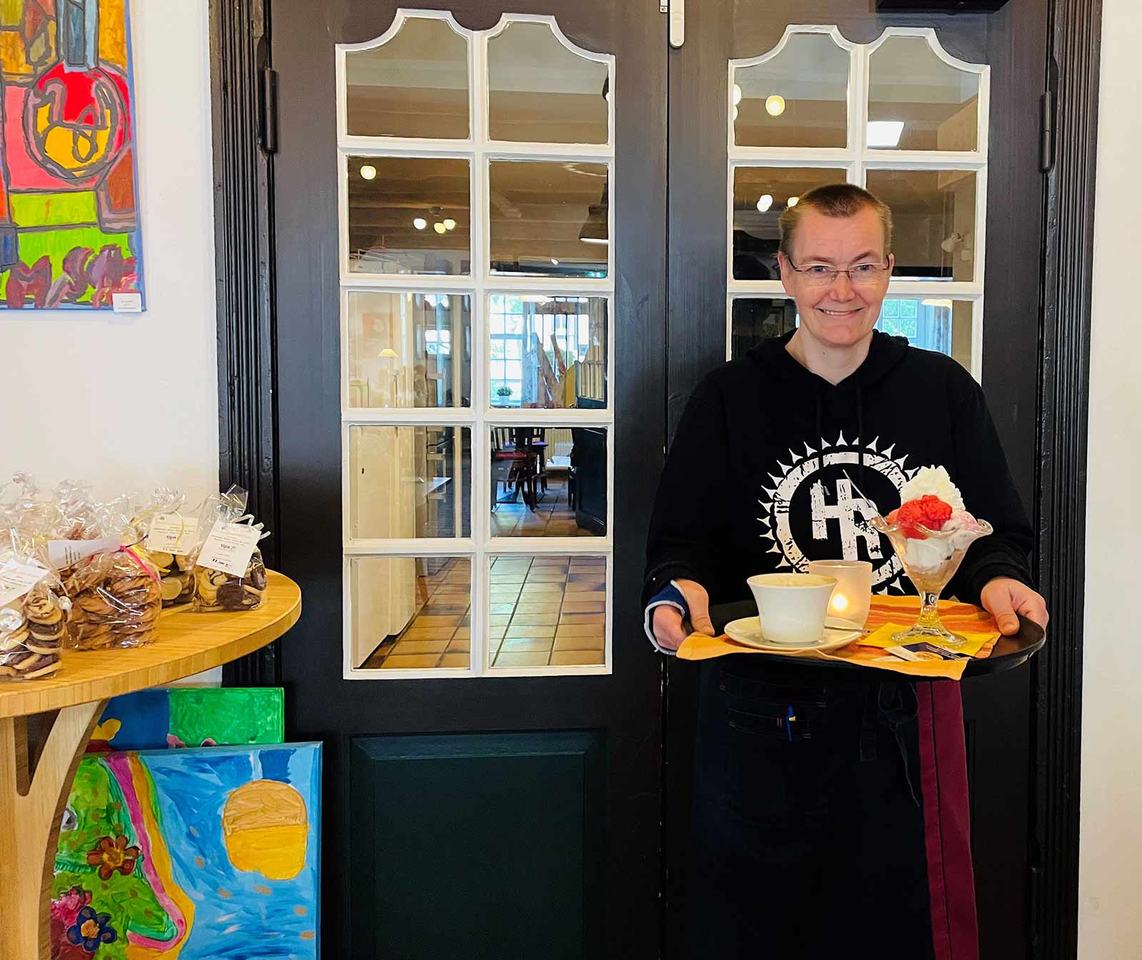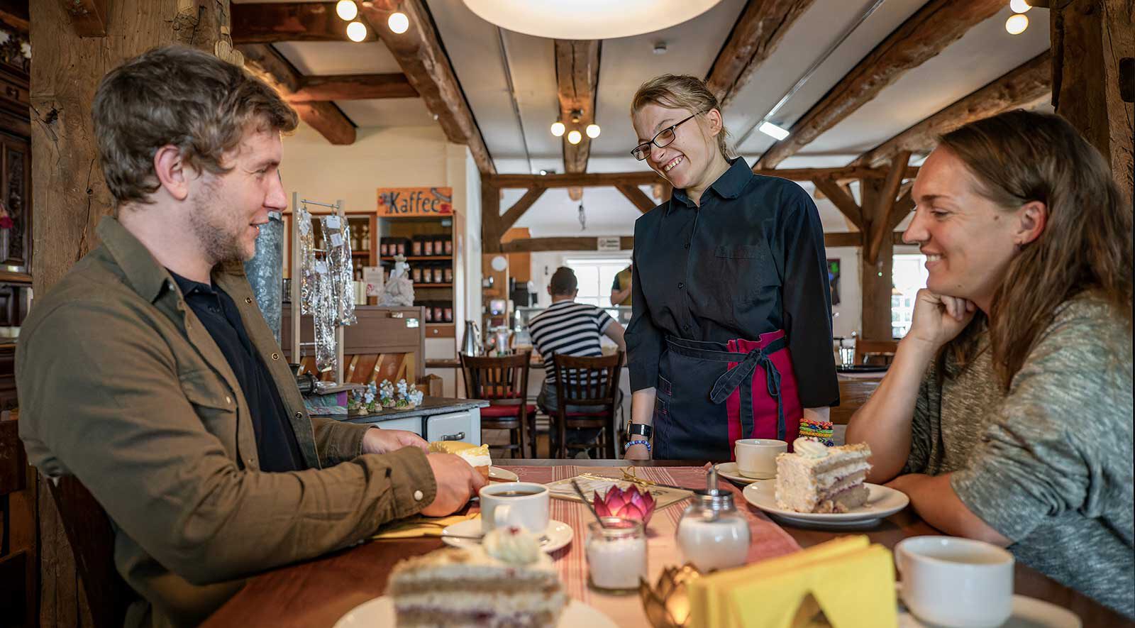 Die Tätigkeiten im Café im Clüverhaus können für Menschen mit Behinderung eine Herausforderung darstellen. Wir begleiten unsere Beschäftigten bei der täglichen Arbeit und stärken ihre soziale Integration in ein normales Leben mitten in der Gesellschaft. Wir sorgen für aktive und gelebte Inklusion.